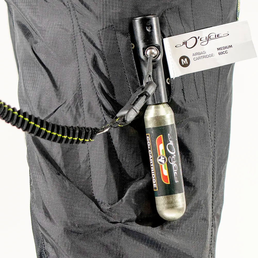 The CO₂ cartridge is the consumable part; If you have been in a high-speed crash, replace the complete airbag system. If the crash was a minor incident at low-speed with no visible damage to the airbag, cartridge area, fabric or stitching, carefully inspect it – test inflate with a spare cartridge and inspect the airbag while inflated as well. When in doubt, treat it as a high-speed crash and replace the full airbag system anyway.