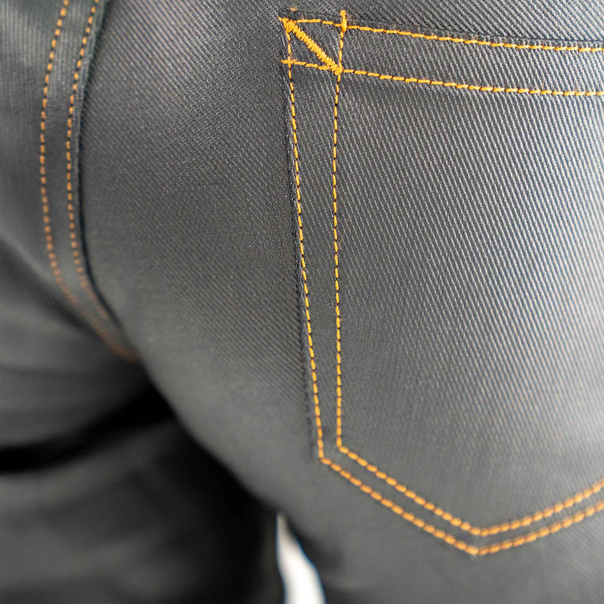Emma is a stealth black jean built in stretchy AA-rated, black-coated Armalith® motorcycle denim with a water-repellent finish, designed to help shed light rain and road spray while delivering certified abrasion performance.