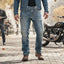 Kian Airbag Jeans with a classic jeans look and a straight-leg cut in a men’s fit. The Mo’cycle® Kian Airbag Jeans are built to wear like real denim and ride like real protection, proper motorcycle construction without the bulky “bike pants” vibe. AAA-rated with UHMWPE space-tech fibers for serious slide performance, and for Summer 2026 they come Fully Impact Equipped or Airbag-Ready. Build your own, or get the complete bundle with the airbag module plus CE-rated protectors, delivered as one ready-to-ride system from day one.