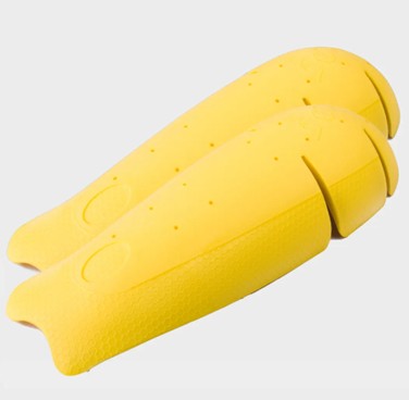 Long knee–shin shape: Follows the leg and is designed to stay in place in a slide.