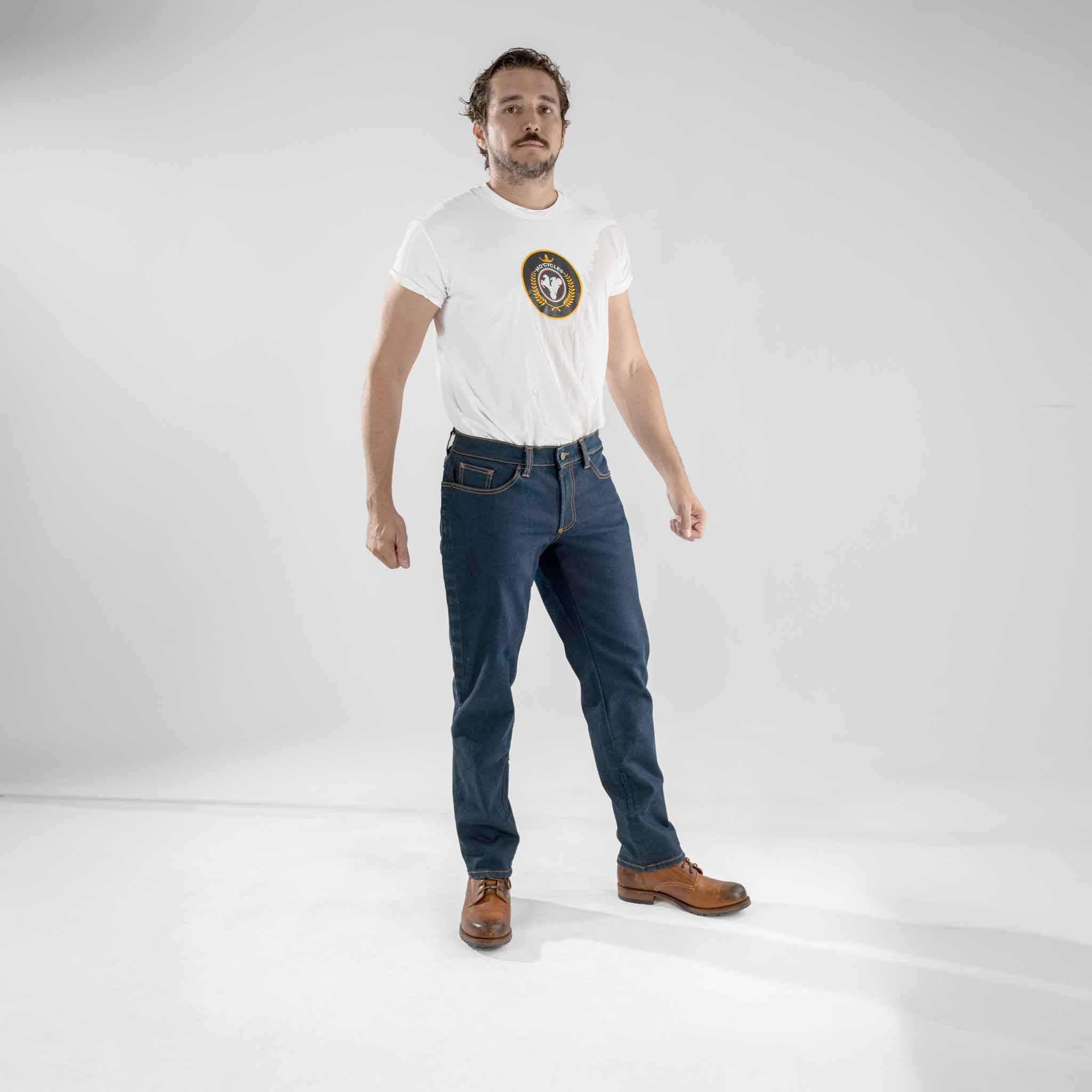 Kian looks like classic blue jeans, but it’s built in stretchy AAA-rated Armalith® motorcycle denim for high abrasion resistance in real slides. The single-layer chassis stays breathable while UHMWPE “space-tech” fibers fights the road.
