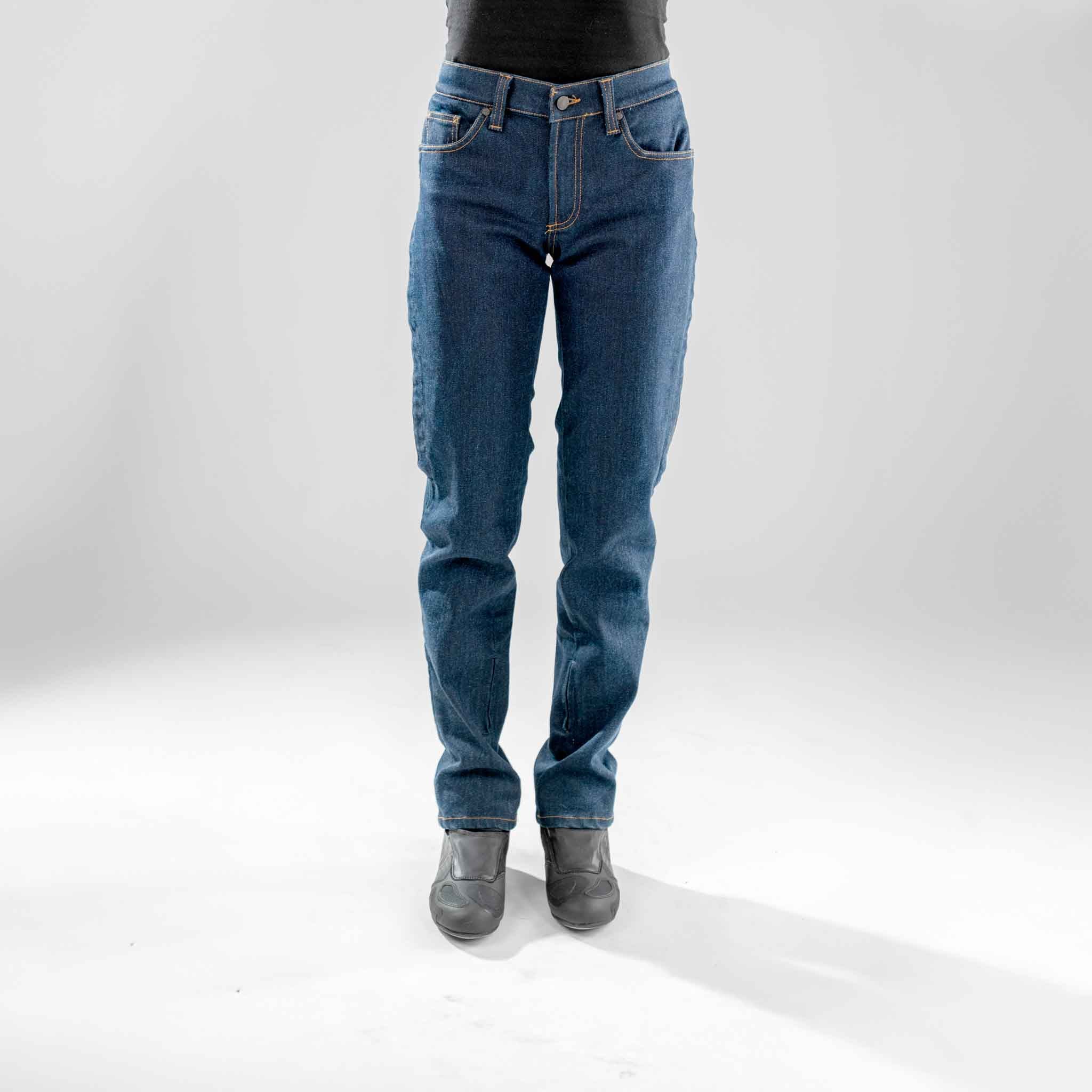 The Touran Airbag Jeans are built for riders who live in the saddle – Mo’cycle Riders and Impact Sliders who measure success in years of riding, not just single seasons. A clean, timeless blue jean with a lower-body airbag safety system built in. Made from AAA-rated Armalith® denim, they look and feel like a solid pair of straight-cut women’s jeans, but underneath you have CE-certified motorcycle denim engineered for real slides on real asphalt. The stretch fabric gives room in the thighs and knees so you can move naturally on and off the bike without feeling tight or restrictive.